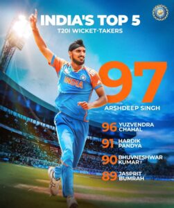 अर्शदीप सिंह बने इंडिया के टॉप 5 T20 विकेट टेकर